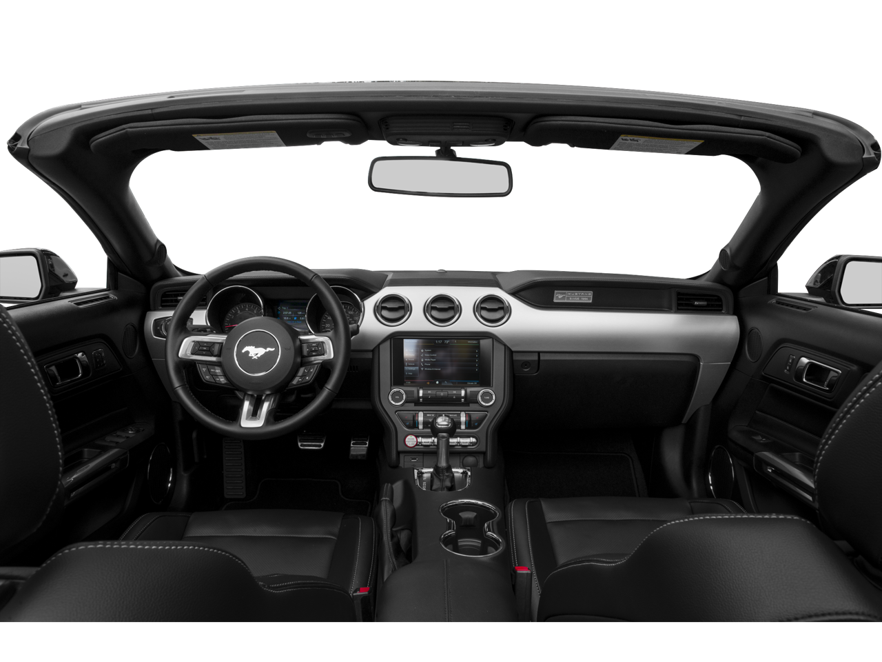 LEATHER INTERIOR, Mustang GT Premium, 2D Convertible, 5.0L V8 Ti-VCT, 6-Speed Automatic with Select-Shift, RWD, Black, Raven Black w/Unique Leather Seating Surfaces, 50 Years Appearance Package, 50 Years Floor Mats, 50 Years Grille with Bright Surround, 9 Speakers, Air Conditioning, AM/FM radio: SiriusXM, Axle Spin Aluminum Finish Instrument Panel, Blind Spot Info System w/Cross-Traffic Alert, Equipment Group 401A, HD Radio, Heated front seats, Leather Shift Knob, Memory Driver Seat & Mirrors, Navigation System, Power driver seat, Power steering, Power windows, Remote keyless entry, Shaker Pro Audio System, Steering wheel mounted audio controls, Unique Leather Seating Surfaces, Ventilated front seats, Wheels: 19 x 8.5 Luster Nickel Premium Painted. 2015 Ford Mustang GT Premium Black RWD 6-Speed Automatic with Select-Shift 5.0L V8 Ti-VCT