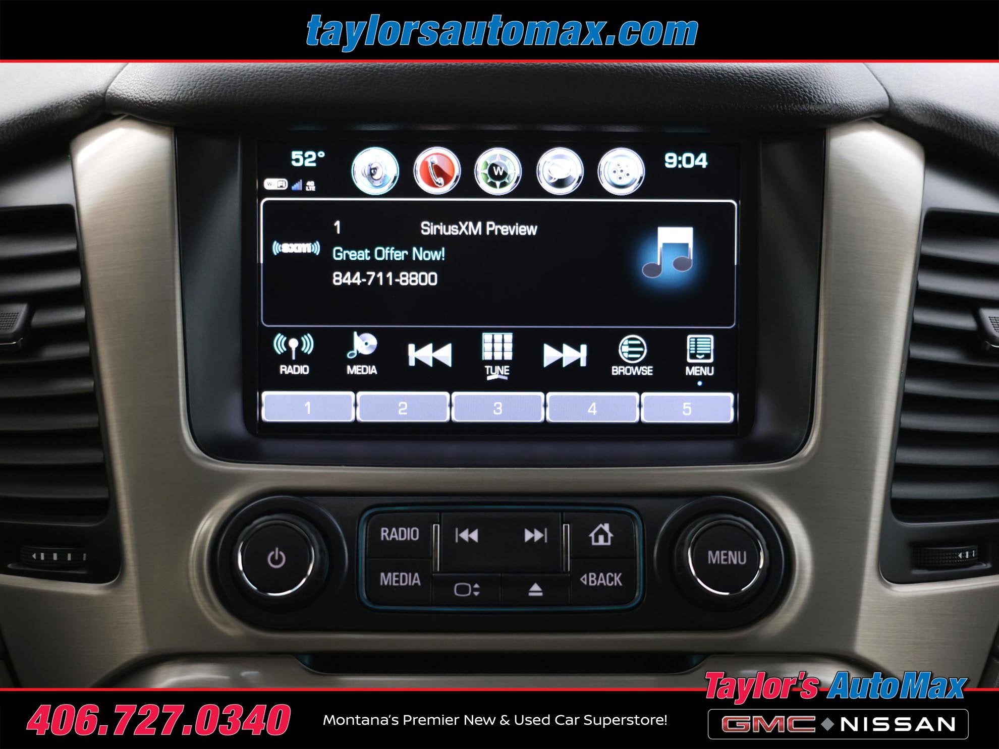 - Audio system, 8" diagonal Color Touch Screen Navigation with GMC Infotainment System AM/FM/SiriusXM stereo with seek-and-scan and digital clock, includes Bluetooth® streaming audio for music and select phones; voice-activated technology for radio and phone; and Shop. Featuring Apple CarPlay and Android Auto capability for compatible phone; 5 USB ports and 1 auxiliary jack