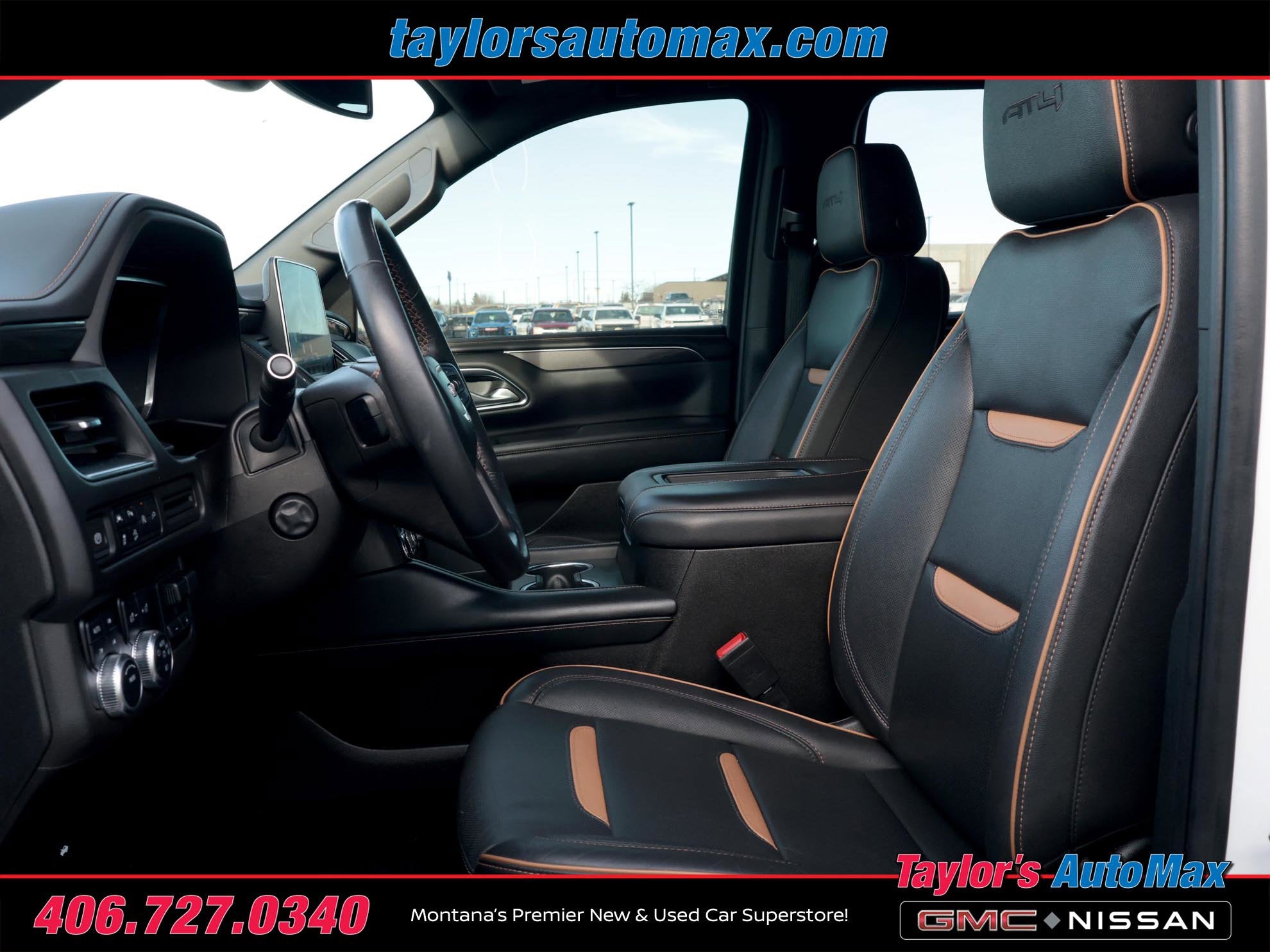LOCAL TRADE IN, LEATHER INTERIOR, Yukon AT4, 4D Sport Utility, EcoTec3 6.2L V8, 10-Speed Automatic with Overdrive, 4WD, Summit White, 2 Presets For Outside Rearview Mirrors, 3 Years of GMC Connected Services, 3rd Row 60/40 Power-Folding Split-Bench Seat, Automatic Stop/Start, Black Roof-Mounted Luggage Rack Side Rails, Bose 9-Speaker Stereo Audio System Feature, Bright Front & Rear Door Sill Plates, Dual-Pane Panoramic Power Sunroof, Extra Capacity Cooling System, Front High-Approach Angle Fascia, Hands-Free Power Programmable Rear Liftgate, Heated & Ventilated Driver & Front Passenger Seats, Heated 2nd Row Outboard Position Seats, Heated Driver & Front Passenger Seats, Heated Steering Wheel, Heavy-Duty Air Filter, Hill Descent Control, Inside Rear-View Auto-Dimming Mirror, Integrated Trailer Brake Controller, Max Trailering Package, Navigation System, Outside Heated Power-Adjustable Mirrors, Power Release 2nd Row 60/40 Split-Folding Bench Seat, Power Tilt & Telescopic Steering Column, Preferred Equipment Group 4SB, Red Horizontal-Mounted Recovery Hooks, Safety Alert Seat, Start/Stop System Disable Button, Universal Home Remote, Wireless Charging. 2022 GMC Yukon AT4 Summit White 4WD 10-Speed Automatic with Overdrive EcoTec3 6.2L V8