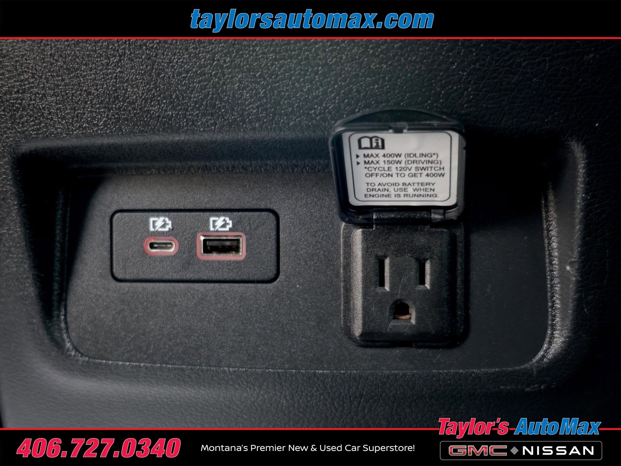 - 2 12V DC Power Outlets and 1 Interior 120V AC Power Outlet