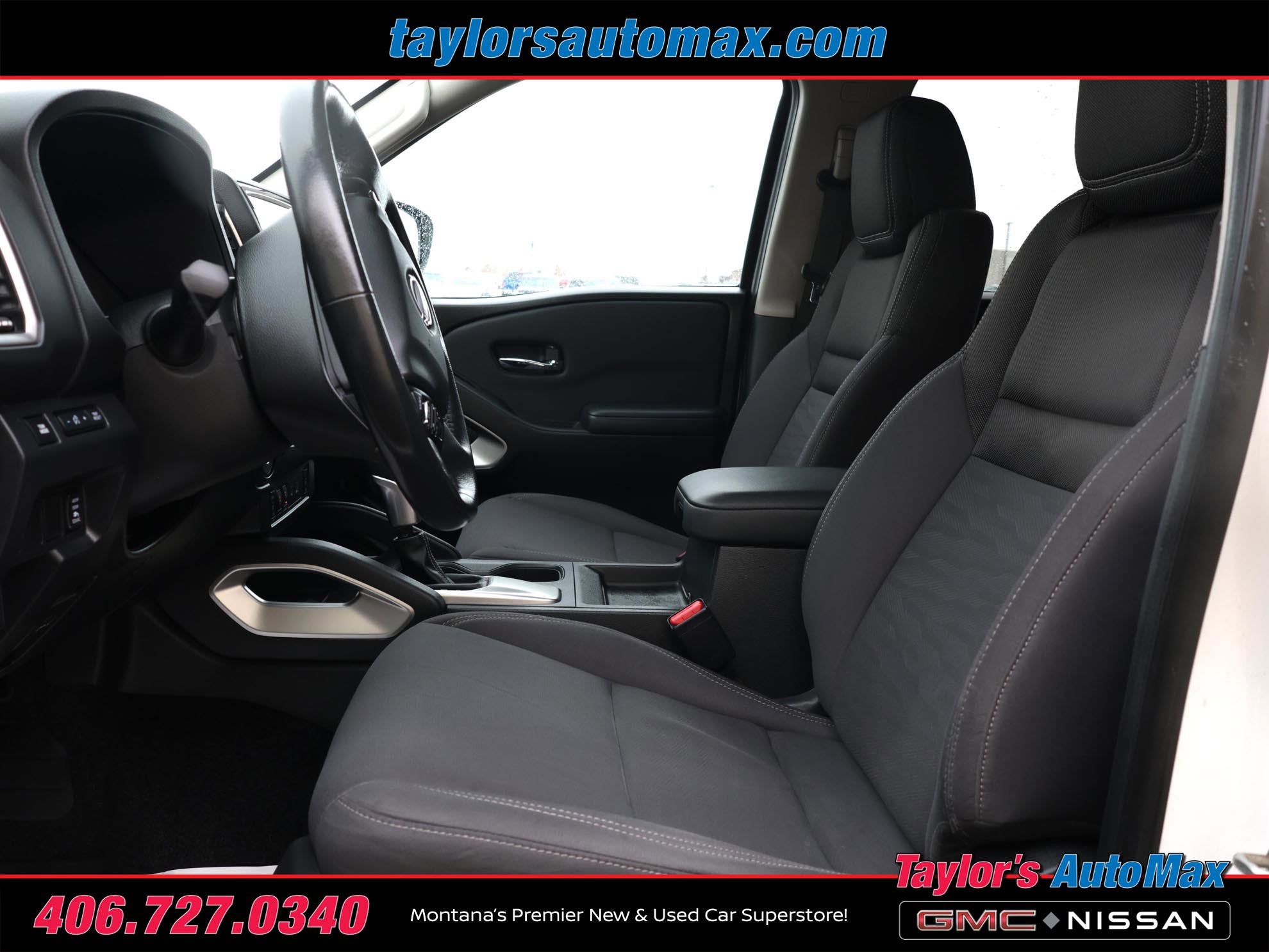 Frontier SV, 4D Crew Cab, 3.8L DI DOHC 24V V6, 9-Speed Automatic, 4WD, Glacier White, 4-Wheel Disc Brakes, 6 Speakers, Air Conditioning, Alloy wheels, AM/FM radio: SiriusXM, Driver door bin, Front Bucket Seats, Power driver seat, Power steering, Power windows, Radio data system, Remote Engine Start, Remote keyless entry, Speed control, Steering wheel mounted audio controls, Tachometer, Tilt steering wheel, Traction control, Trip computer. 2022 Nissan Frontier SV Glacier White 4WD 9-Speed Automatic 3.8L DI DOHC 24V V6