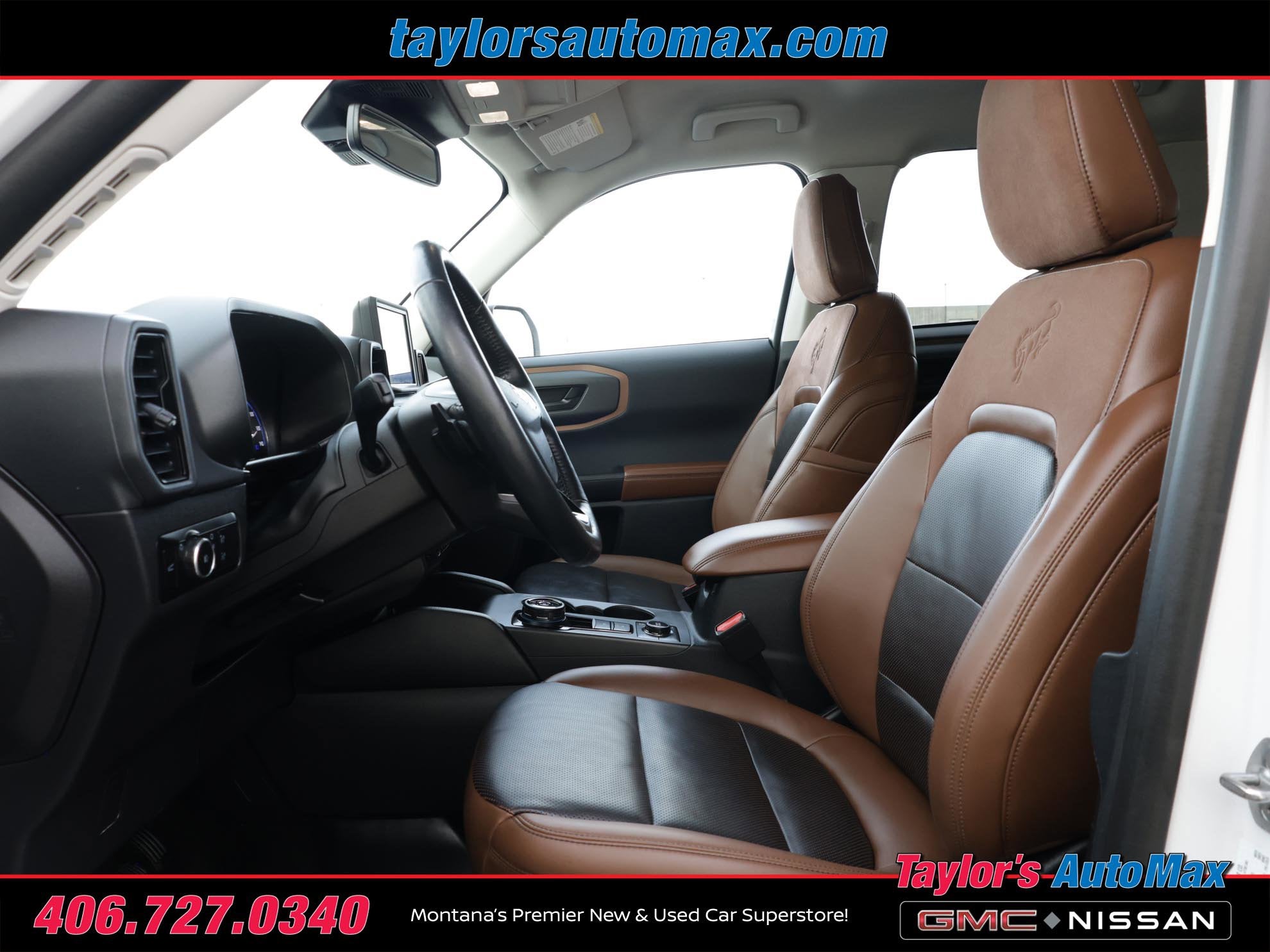 LEATHER INTERIOR, Bronco Sport Badlands, 4D Sport Utility, EcoBoost 2.0L I4 GTDi DOHC Turbocharged VCT, 8-Speed Automatic, 4WD, Oxford White, Ebony/Roast w/Leather Trimmed Heated Sport Contour Bucket Seats, Auto-Dimming Rear-View Mirror, Body-Colored Door Handles, Dual-Zone Electronic Automatic Temperature Control, Equipment Group 400A, Evasive Steering Assist, Ford Co-Pilot360 Assist+, HD Radio, Heated Steering Wheel, Intelligent Adaptive Cruise Control w/Stop & Go, Leather-Trimmed Heated Sport Contour Bucket Seats, Memory Driver's Seat & Sideview Mirror, Premium Package, Rear Parking Sensors, Remote Start System, Universal Garage Door Opener (UGDO), Voice-Activated Touchscreen Navigation System, Wireless Charging Pad. 2023 Ford Bronco Sport Badlands Oxford White 4WD 8-Speed Automatic EcoBoost 2.0L I4 GTDi DOHC Turbocharged VCT