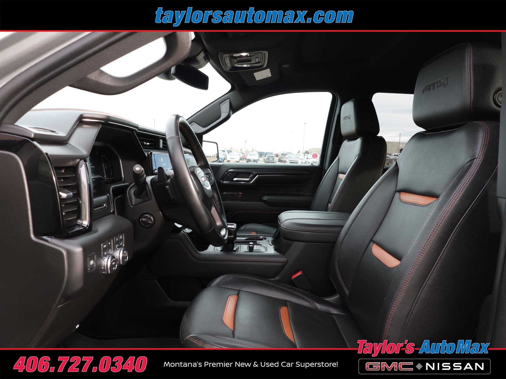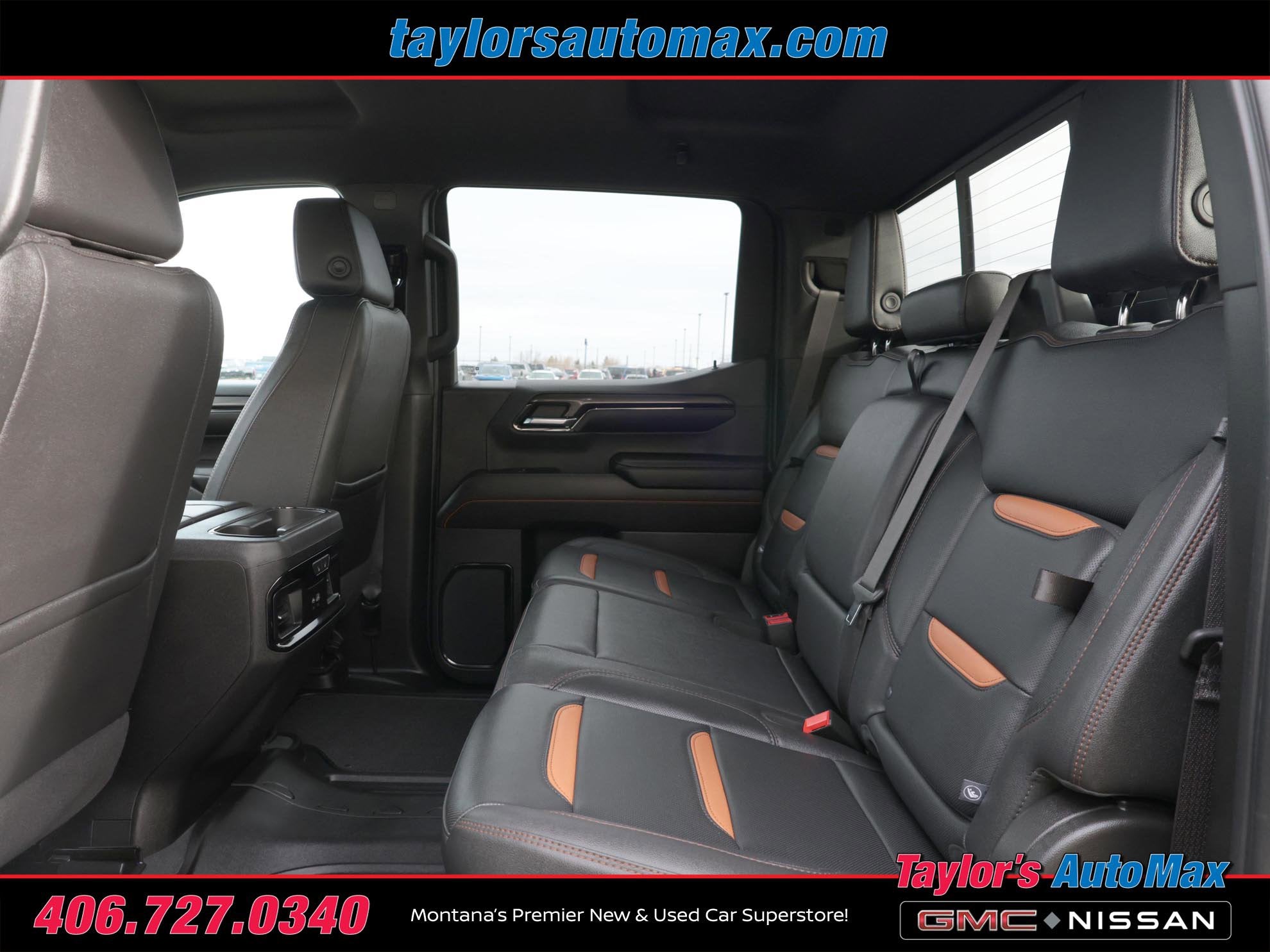 LEATHER INTERIOR, Sierra 1500 AT4, 4D Crew Cab, EcoTec3 6.2L V8, 10-Speed Automatic, 4WD, Sterling Metallic, Jet Black With Kalahari Accents Leather, 120-Volt Bed Mounted Power Outlet, 120-Volt Interior Power Outlet, 2 Charge/Data USB Ports Inside Center Console, 2 Type-C Charge-Only Rear USB Ports, 2 USB Ports, 220 Amp Alternator, AT4 Preferred Package, Auto-Locking Rear Differential, Black Chrome Header & Grille Insert Bars, Color-Keyed Carpeting Floor Covering, Deep-Tinted Glass, Electric Rear-Window Defogger, Floor-Mounted Center Console, Front Prem Floor Liners w/Removable Carpet Insert, Front Rain-Sensing Wipers, GMC Connected Access Capable, HD Surround Vision, Heated 2nd Row Outboard Seats, Heated Driver & Front Outboard Passenger Seating, Heavy-Duty Air Filter, Hill Descent Control, Hitch Guidance, Hitch View, In-Vehicle Trailering System App, Integrated Trailer Brake Controller, Keyless Open & Start, LED Cargo Area Lighting, Navigation System, OnStar & GMC Connected Services Capable, Perimeter Lighting, Power Door Locks, Power Front Passenger Windows w/Express Up/Down, Power Front Windows w/Driver Express Up/Down, Power Rake & Telescoping Steering Column, Power Rear Windows w/Express Down, Power Sliding Rear Window w/Rear Defogger, Preferred Equipment Group 4SB, Premium Bose 7-Speaker Sound System, Push Button Start, Rear Cross Traffic Braking, Rear Pedestrian Detection, Rear Prem Floor Liners w/Removable Carpet Insert, Rear Wheelhouse Liners, Red Recovery Hooks, Remote Vehicle Starter System, SiriusXM w/360L, Spray-On Pickup Bedliner w/AT4 Logo, Steering Wheel Audio Controls, Theft Deterrent System (Unauthorized Entry), Trailer Camera Provisions, Trailer Side Blind Zone Alert, Trailering Package, Ultrasonic Front & Rear Park Assist, Universal Home Remote, Ventilated Driver & Front Passenger Seats, Wi-Fi Hotspot Capable, Wireless Charging. 2024 GMC Sierra 1500 AT4 Sterling Metallic 4WD 10-Speed Automatic EcoTec3 6.2L V8