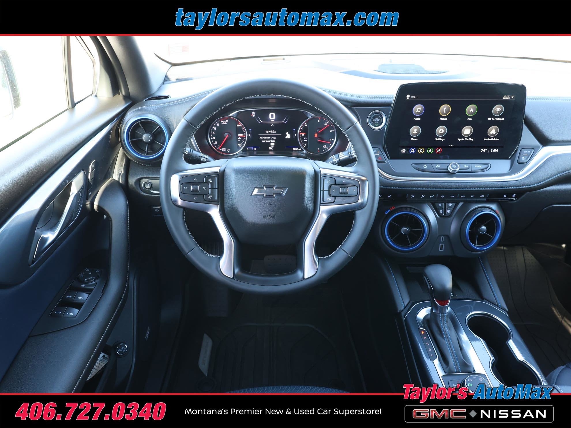 LOCAL TRADE IN ONE OWNER, LEATHER INTERIOR, Blazer RS, 4D Sport Utility, 3.6L V6 SIDI, 9-Speed Automatic with Overdrive, AWD, Iridescent Pearl Tricoat, Jet Black/Nightshift Blue Leather, 1st & 2nd Row All-Weather Floor Liners (LPO), 4-Wheel Disc Brakes, 6-Way Power Front Passenger Seat Adjuster, 8 Speakers, 8-Way Power Driver Seat Adjuster, Adaptive Cruise Control, Air Conditioning, Automatic temperature control, Bose Premium 8-Speaker Audio System Feature, Driver Confidence II Package, Enhanced Automatic Emergency Braking, Enhanced Convenience Package, Floor Liner Package (LPO), HD Surround Vision, Heated Rear Outboard Seating Positions, Heated steering wheel, Integrated Cargo Liner (LPO), Memory Settings For Driver Seat & Exterior Mirrors, Navigation System, Power Liftgate, Power Tilt & Telescoping Steering Column, Preferred Equipment Group 1RS, Rear Camera Mirror, Rear Camera Mirror Washer, Safety Alert Seat, Ventilated Driver & Front Passenger Seats. 2025 Chevrolet Blazer RS Iridescent Pearl Tricoat AWD 9-Speed Automatic with Overdrive 3.6L V6 SIDI