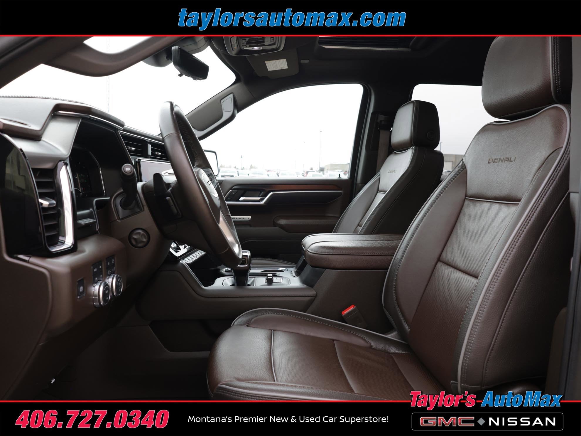 LEATHER INTERIOR, Sierra 1500 Denali, 4D Crew Cab, 3.0L I6, 10-Speed Automatic, 4WD, Downpour Metallic, Atmosphere/Brownstone Leather, 120-Volt Bed Mounted Power Outlet, 120-Volt Interior Power Outlet, 170 Amp Alternator, 2 Charge/Data USB Ports Inside Center Console, 2 Type-C Charge-Only Rear USB Ports, 2 USB Ports, Auto-Locking Rear Differential, Auxiliary External Transmission Oil Cooler, Bed View Camera, Chrome Header w/Signature Denali Chrome Grille, Chrome Recovery Hooks, Chrome Wheel To Wheel Assist Steps, Color-Keyed Carpeting Floor Covering, Deep-Tinted Glass, Denali Reserve Package, Electric Rear-Window Defogger, Floor-Mounted Center Console, Front Rain-Sensing Wipers, GMC MultiPro Power Steps, HD Surround Vision, Heated 2nd Row Outboard Seats, Heated Driver & Front Outboard Passenger Seating, Heavy-Duty Air Filter, Hill Descent Control, Hitch Guidance, Hitch View, In-Vehicle Trailering System App, Integrated Trailer Brake Controller, Keyless Open & Start, LED Cargo Area Lighting, Multicolor 15 Diagonal Head-Up Display, Navigation System, OnStar Services Capable, Perimeter Lighting, Power Door Locks, Power Front Passenger Windows w/Express Up/Down, Power Front Windows w/Driver Express Up/Down, Power Rake & Telescoping Steering Column, Power Rear Windows w/Express Down, Power Sliding Rear Window w/Rear Defogger, Power Sunroof, Preferred Equipment Group 5SA, Premium Bose 7-Speaker Sound System, Push Button Start, Rear Camera Mirror, Rear Cross Traffic Braking, Rear Pedestrian Detection, Rear Wheelhouse Liners, Remote Vehicle Starter System, SiriusXM w/360L Trial Subscription, Spray-On Pickup Bedliner w/GMC Logo, Steering Wheel Audio Controls, Technology Package, Theft Deterrent System (Unauthorized Entry), Trailer Camera Provisions, Trailer Side Blind Zone Alert, Trailering Package, Ultrasonic Front & Rear Park Assist, Universal Home Remote, Ventilated Driver & Front Passenger Seats, Wheel Locks (Set of 4) (LPO), Wheels: 22 x 9 Painted Aluminum, Wi-Fi Hotspot Capable, Wireless Charging. 2025 GMC Sierra 1500 Denali Downpour Metallic 4WD 10-Speed Automatic 3.0L I6